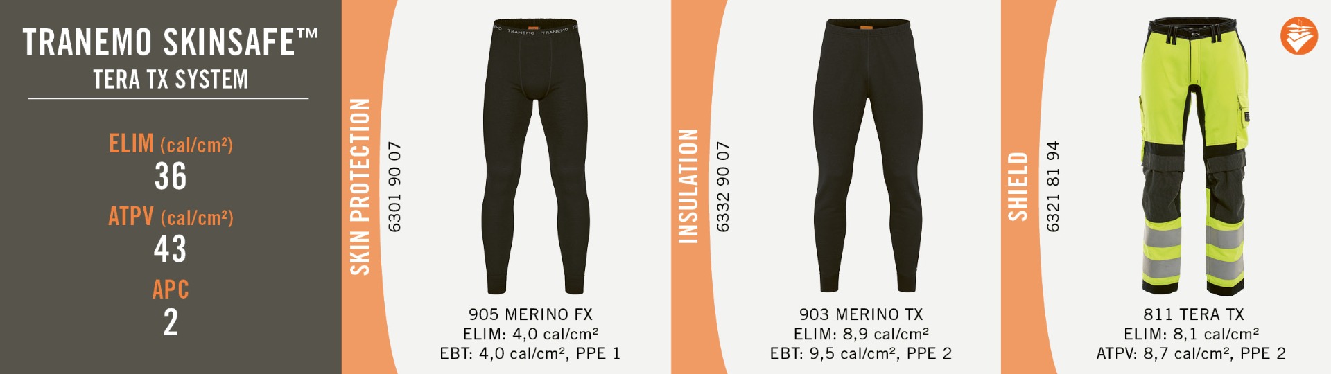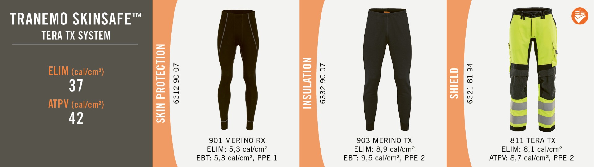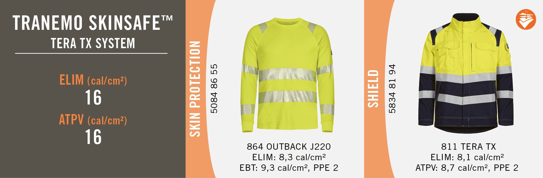 Tranemo Skinsafe™ is the name of our multi-layer system designed to protect against flame, heat and Electric Arc injuries. Starting at skin level, Tranemo has taken a human-centric approach to design, putting the individual at the focus of protection. The use of multiple thin layers instead of one thick layer, offers the wearer Flame Retardant protective clothing that is lightweight and gives a better freedom of movement. This allows the wearer to work more effectively and for longer periods.